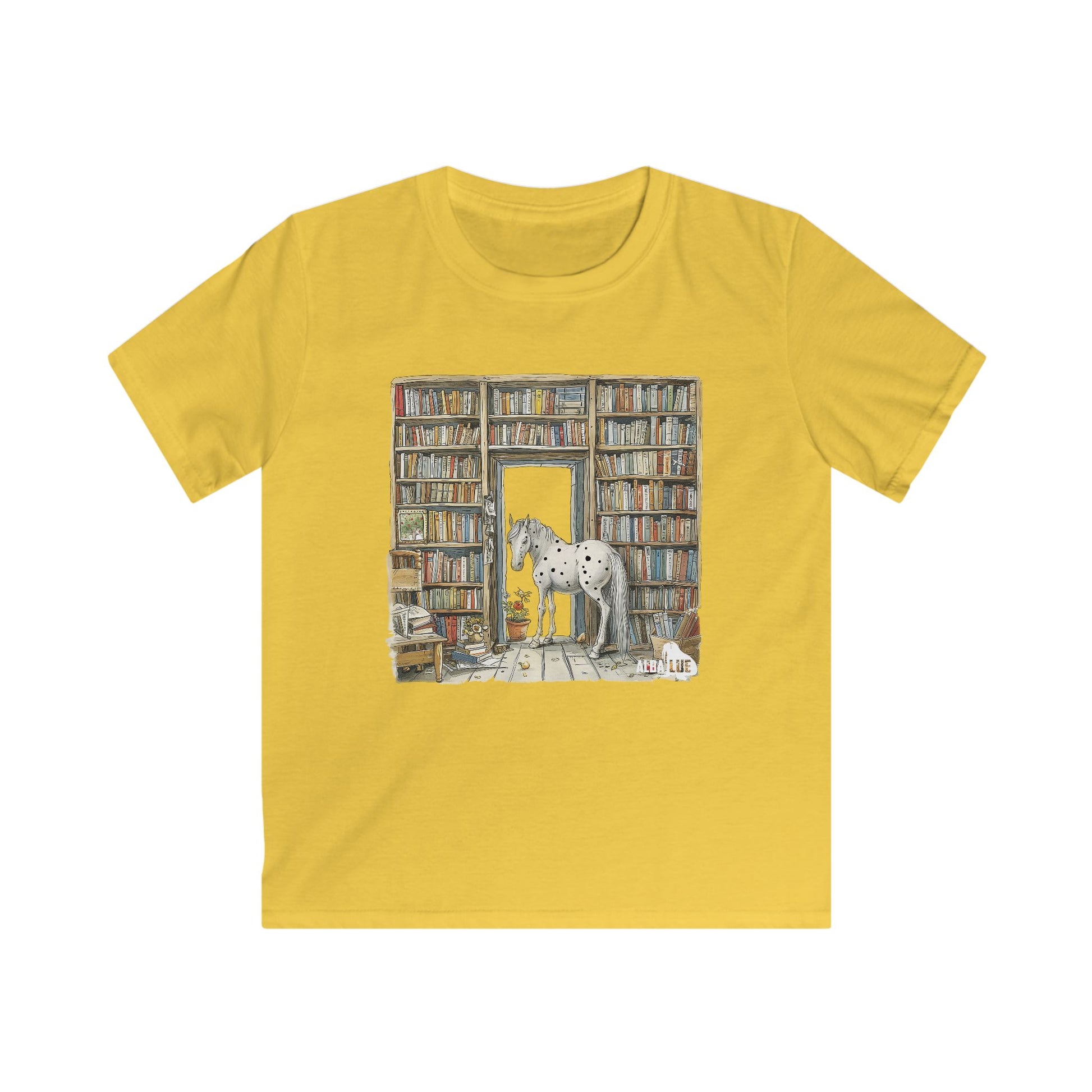 This Kids Tee features a whimsical design of a horse in a library, creating a playful and imaginative vibe. Perfect for young book lovers and animal enthusiasts, this tee is ideal for casual wear or as a standout piece for school or playdates. Great for birthdays, book fairs, library visits, and everyday adventures.
